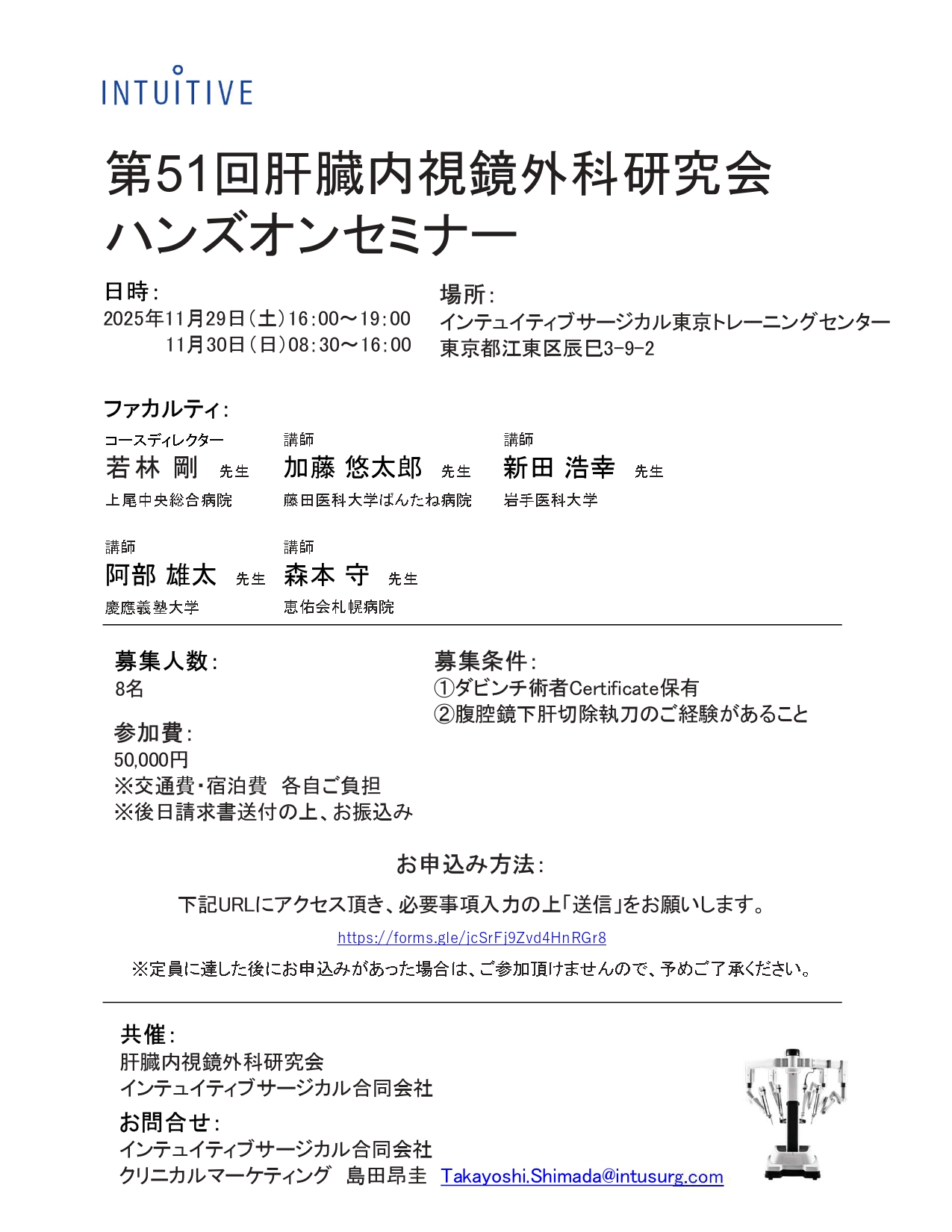共催 | 肝臓内視鏡外科研究会 インテュイティブサージカル合同会社 |